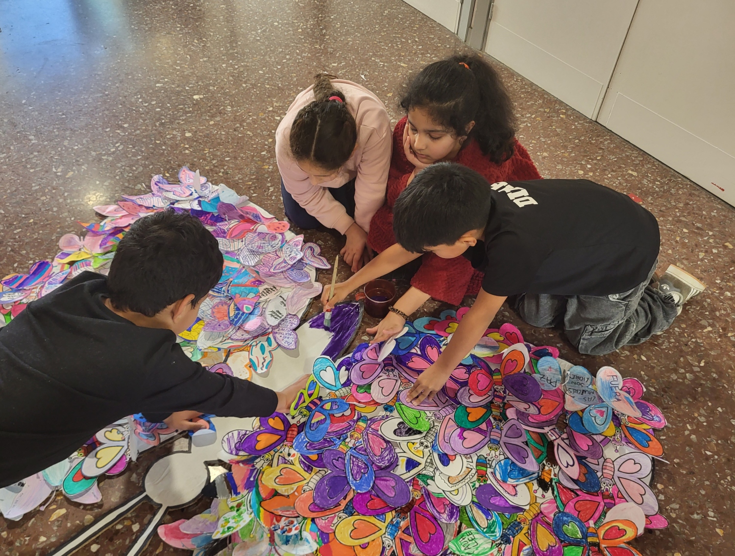El pasado martes, para recordarnos la infatigable lucha que debe seguir librándose en todo lugar por acabar con la violencia contra las mujeres, este centro organizó una actividad sencilla: pintar y recortar pequeñas mariposas para pegarlas en un gran mural también con forma de mariposa. El vídeo que precede a este párrafo recoge cómo nos encontramos, grupo a grupo, junto al comedor para crear esa gran mariposa que en breve lucirá espléndida en una pared de nuestro San Jorge. Antes, tutoras y tutores explicaron en sus respectivas aulas que todavía hay niñas y mujeres que siguen siendo insultadas, golpeadas, despreciadas de mil maneras… y que es inexcusable mirar para otro lado y no intervenir para defenderlas frente a los atropellos que sufren por ser justamente eso, niñas y mujeres.